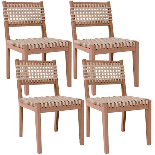 O Kit 4 Cadeiras Madeira Maciça Para Cozinha Corda Náutica Giardino G01 Castanheira Bege, da Lyam Decor, combina design moderno com durabilidade e funcionalidade. Com sua intricada tecelagem de corda náutica e estrutura maciça de madeira de eucalipto, essa cadeira de madeira é perfeita para uso interno e externo, seja na cozinha, varanda ou área de entretenimento. Seu design adiciona um toque de elegância a qualquer espaço, enquanto a construção robusta garante qualidade duradoura. Dê um upgrade na sua experiência gastronómica com a Cadeira de Madeira Maciça Giardino. Adicione agora mesmo ao seu carrinho e surpreenda-se!