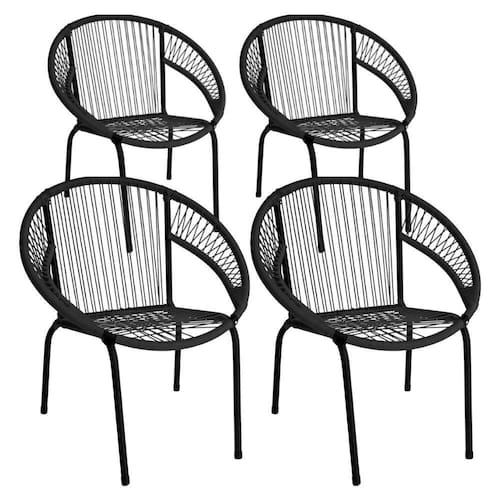 Kit 4 Cadeira De área Eclipse Tramado Fibra Sintética E Aço Preto