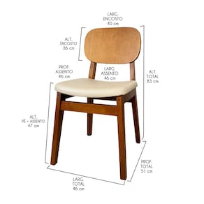 A cadeira de jantar Melissa combina elegância e funcionalidade com um design minimalista e atemporal. Estruturada em madeira maciça com acabamento em tom natural, oferece durabilidade e charme para diversos ambientes, como salas de jantar, cozinhas ou escritórios. O encosto levemente curvado em madeira proporciona conforto ergonômico, enquanto o assento estofado em material sintético bege garante maciez e fácil limpeza. Suas linhas retas e cantos arredondados trazem um toque moderno, ideal para compor ambientes sofisticados com estilo escandinavo, retrô ou contemporâneo. CARACTERÍSTICAS TÉCNICAS:- Produzida em Madeira Maciça Sustentavel; - Acabamento Envernizado na Cor Pinhão; - Assento Preenchido com Espuma D23; - Tecido Courino Sintético Bege. *PRODUTO ENTREGUE MONTADO. *CONJUNTO COMPOSTO POR 4 KITS CADEIRA MADEIRA MACIÇA COM ASSENTO COURINO BEGE DIMENSÕES: - Altura Total: 83 cm - Altura até o Assento: 47cm - Altura do Encosto: 36cm - Largura do Encosto: 40cm - Largura do Assento: 46cm - Profundidade do Assento: 46cm - Profundidade Total: 51cm - Peso 7kg INFORMAÇÕES ADICIONAIS: ATENÇÃO: Móvel produzido em madeira maciça natural podendo ocorrer mudança no tom da madeira conforme o produto; *Conferir se o produto está de acordo com o que comprou, produto danificado não será aceito troca; **As imagens ambientadas são meramente ilustrativas e podem apresentar itens que não compõe o produto. As cores do produto podem variar de acordo com o monitor, a iluminação do ambiente ou sua percepção visual; ***Limpeza deve ser feita com pano macio e seco ou levemente umedecido com água e sabão neutro. Não devem ser utilizados produtos abrasivos; Garantia para defeitos de fabricação conforme Código de Defesa do Consumidor. Marca: Não Informado