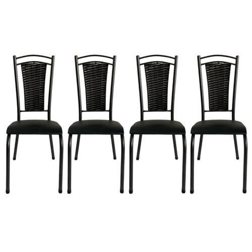 Kit 4 Cadeira Paris De Cozinha Tubular Preto Aço Estofada Encosto Junco Preto