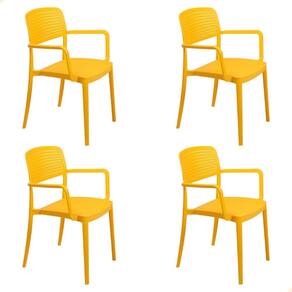 4 Un - CADEIRA TRAMONTINA SERENA EM POLIPROPILENO COM BRAÇOS COR AMARELA 92097000