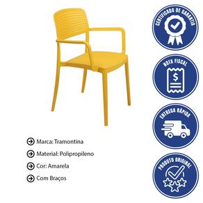 - Deixe seu espaço ainda mais acolhedor com a Cadeira Tramontina Serena em Polipropileno Amarelo com braços.