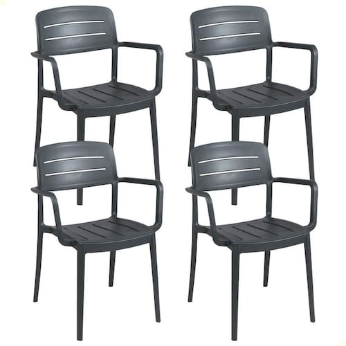 4 UN - CADEIRA AMÉLIA TRAMONTINA EM POLIPROPILENO GRAFITE COM BRAÇOS 92099007
