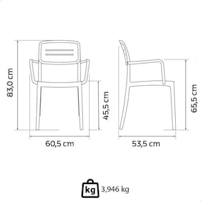 - Com braços e design moderno, ela combina resistência e estilo, ideal para ambientes internos e externos.