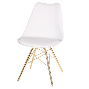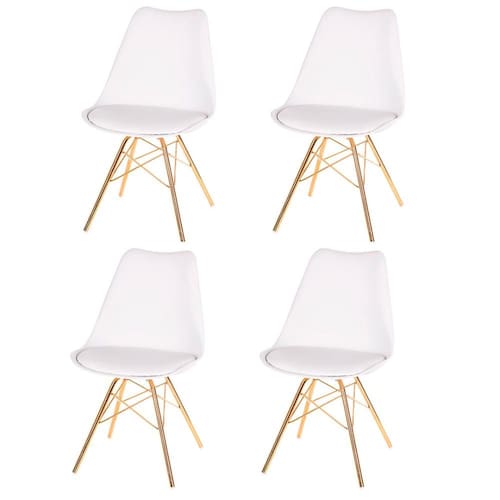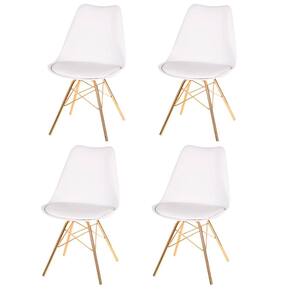 Kit 4 Cadeiras ANM6067F Eames Saarinen Joly Anima Office Polipropileno Branco Base Ferro Dourada
