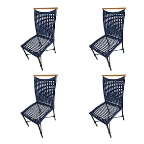 Kit 4 Cadeiras Anne Corda Náutica Detalhe em Madeira Base Alumínio Preto/azul Marinho - Azul Royal