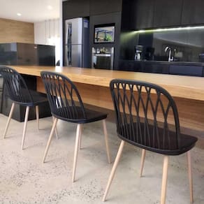Com design diferenciado em curvas e detalhes vazados, a cadeira Ariane traz modernidade e conforto ao seu espaço. Conjunto com 4 Cadeiras com assento e encosto em polipropileno, sem braços. Possui base fixa em aço com aplicação de adesivo na cor madeira. Acabamento: Polipropileno Acabamento da Estrutura: Adesivo Altura do assento até o chão: 43.5000 Ambiente Principal: Sala de Jantar codigo_ean: 7909903350256 Complexidade da Montagem: Baixa: pode ser montado por uma pessoa sozinha Cor: Preto Cor do Produto: Preto Dobrável: Não Escala de Brilho: Semi-Fosco Estrutura do Assento: Polipropileno Estrutura do Encosto: Polipropileno Giratória: Não Informações Complementares: Conjunto com 4 Cadeiras com assento e encosto em polipropileno, sem braços. Possui base fixa em aço com aplicação de adesivo na cor madeira. Itens Inclusos: 4 Cadeiras, Kit Ferragens e Manual de Montagem Linha ou Coleção: Ariane Manual de Montagem e Instalação: https://product-hub-prd.madeiramadeira.com.br/857928/documents/1f2224ae-871e-47f3-82ff-d780105c52a4713572manualcadeiraariane.pdf Material da Base: Aço Adesivado Material dos Pés: Aço Material Principal: Polipropileno Necessita Montagem: Sim Origem do Produto: Importado Peso: 4 kg Possui Apoio para Braços: Não Possui Apoio Para os Pés: Não Possui Rodízio: Não Recomendações de Uso, Manutenção e Limpeza: "Uso interno. Não expor ao sol ou umidade. Não exceder a capacidade de peso de 120kg. Limpar com pano macio umedecido em solução de água e sabão neutro e secar em seguida. Não utilizar produtos químicos ou abrasivos." Revestimento do Assento: Polipropileno Revestimento do Encosto: Polipropileno Sistema de Montagem: Encaixe e Parafusos Tipo de Assento: Fixo Tipo de Encosto: Fixo