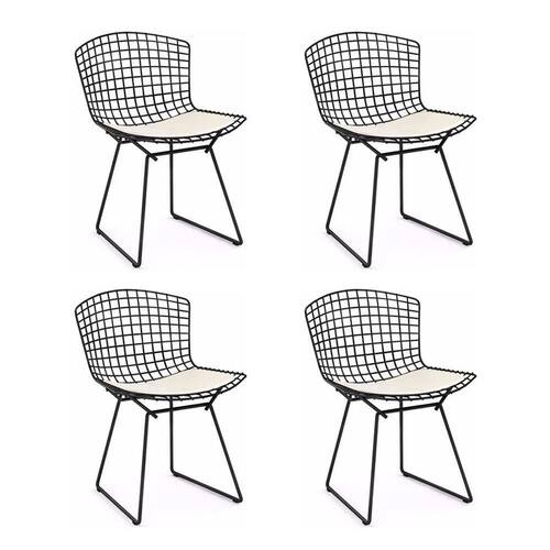 AS IMAGENS SÃO MERAMENTE ILUSTRATIVAS E PODEM SOFRER VARIAÇÕES DE COR E PEQUENOS DETALHES DE ACORDO COM O SEU MONITOR, ILUMINAÇÃO DO AMBIENTE E ATÉ MESMO A SUA PERCEPÇÃO VISUAL.Kit 4 Cadeiras Bertoia Preta com Assento Branco