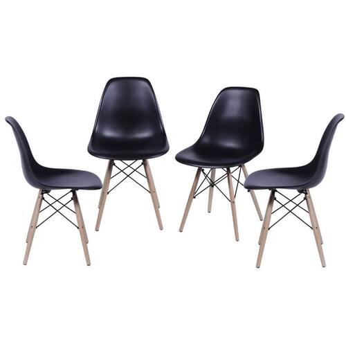 A famosa Cadeira DKR, também conhecida como Eiffel, é a queridinha dos decoradores e designers. Ela fica bem em qualquer ambiente, valoriza qualquer espaço e trazendo mais sofisticação para o ambiente. Nesta opção, sua concha é em policarbonato, com acabamento mais polido e base de madeira, que acrescenta mais charme ao ambiente. Especificações Técnicas: Cor: Preta Peso: 18,5 kg Altura: 0,81m Comprimento: 0,42m Largura: 0,47m Ideal para uso: Interno Peso suportado: 120Kg Pode ser empilhada Não EAN: 7908146204319 Modelo: Dkr Eames Base: Madeira Material: Assento em polipropileno com base em madeira : O produto possui do fornecedor de 6 meses contra defeitos de fabricação a partir da emissão da . Conteúdo: Kit 04 Cadeiras BoxBit DKR Eames Polipropileno Preto Base Madeira Cuidados: Injetados de policarbonato / polipropileno / ABS e acrílico: Limpeza diária com pano úmido e macio em solução de água e detergente neutro; Enxaguar com pano úmido e secar em seguida; Jamais utilizar solventes como thinner, acetona, produtos abrasivos como saponáceos, esponjas de aço, e similares; Evitar exposição prolongada do acrílico ao sol. Madeira: Limpar com pano branco limpo e macio umedecido com água, fazendo movimentos circulares; Não utilizar produtos químicos ou abrasivos, ou que contenham solventes ou amoníaco; Evitar batidas. Ean: 7908146204319