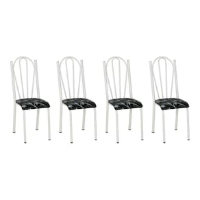 Kit 4 Cadeiras De Cozinha Alasca Estampado Preto Florido Pés De Ferro Branco - Pallazio