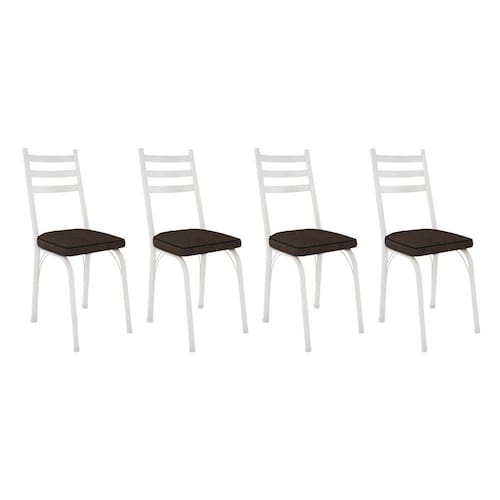 Kit 4 Cadeiras de Cozinha Luisiana Estampado Imbuia Pés de Ferro Branco - Pallazio - Marrom
