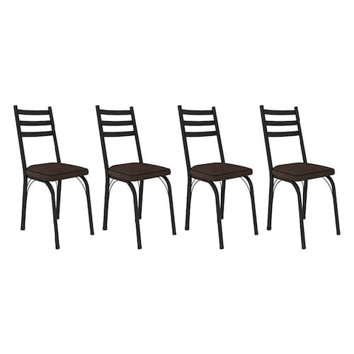 Kit 4 Cadeiras De Cozinha Luisiana Estampado Imbuia Pés De Ferro Preto - Pallazio