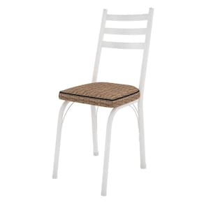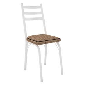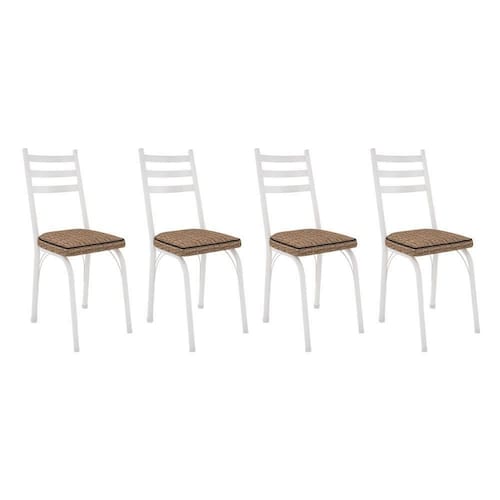 Kit 4 Cadeiras De Cozinha Luisiana Estampado Rattan Bege Pés De Ferro Branco - Pallazio
