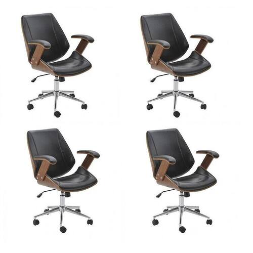 Cadeira office giratória com ajuste de altura, estrutura em madeira com estofado revestido em poliuretano (PU), possui apoio para braços. Base cromada em formato estrela com rodízios em nylon. Altura do Conjunto: 99 cm Ambiente: null Ambiente Principal: Escritório Cor: Preto Cor do Produto: Preto Informação Complementar: 4x Cadeira de Escritório Diretor Giratória Office Lisboa Preto Largura: 63 cm Altura: 99 cm Peso: 15 kg Profundidade: 61 cm Necessita Montagem: Sim
