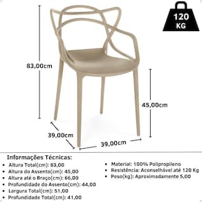 Outro diferencial da Cadeira de Jantar Allegra é que ela é confeccionada em materiais de alta qualidade, feita 100% em polipropileno material que garante alta durabilidade e resistência.