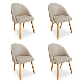 Kit 4 Cadeiras De Jantar Bela Veludo Bege Pés Palito Castanho Pallazio
