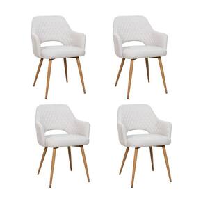 AS IMAGENS SÃO MERAMENTE ILUSTRATIVAS E PODEM SOFRER VARIAÇÕES DE COR E PEQUENOS DETALHES DE ACORDO COM O SEU MONITOR, ILUMINAÇÃO DO AMBIENTE E ATÉ MESMO A SUA PERCEPÇÃO 4 Cadeiras de Jantar Dakota Estrutura AÃo Carbono Laminado Natural com Estofado Linho Cru