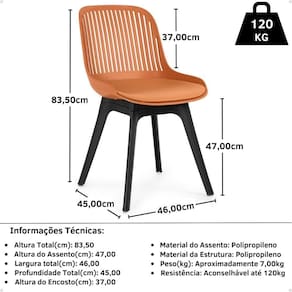 Fabricada com polipropileno de alta qualidade, sua estrutura é leve, resistente e duradoura, suportando o uso diário com facilidade. Sua versatilidade de design permite que seja utilizada em diversos ambientes: desde salas de jantar e cozinhas modernas até home offices e varandas cobertas.