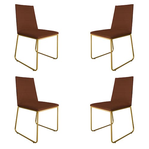 Kit 4 Cadeiras de Jantar Estofada Lille Base Gold Veludo Terracota chegou essa incrível novidade para você, que deseja inovar e decorar o seu espaço com muito Estilo. A Cadeira Lille possui uma matéria-prima de ótima qualidade, garantindo conforto e durabilidade do produto. Possui variações de cores tanto na base e no assento, oferecendo várias opções de escolha para sua decoração.