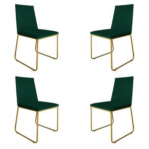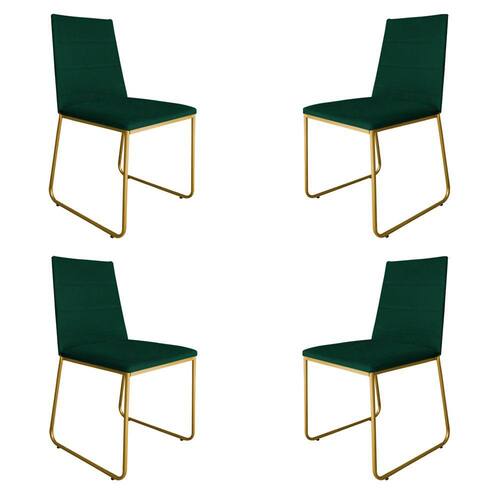 Kit 4 Cadeiras de Jantar Estofada Lille Base Gold Veludo Verde chegou essa incrível novidade para você, que deseja inovar e decorar o seu espaço com muito Estilo. A Cadeira Lille possui uma matéria-prima de ótima qualidade, garantindo conforto e durabilidade do produto. Possui variações de cores tanto na base e no assento, oferecendo várias opções de escolha para sua decoração.