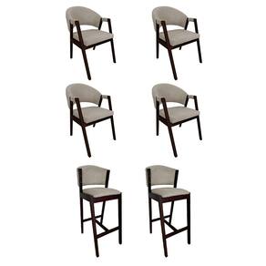 Kit 4 Cadeiras de Jantar Helen com 2 Banquetas Ana Madeira Maciça Castanho Premium Linho Bege