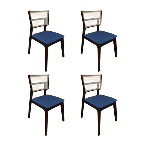 Kit 4 Cadeiras De Jantar Tela Premium Madeira Maciça Manuela Azul Veludo Castanho
