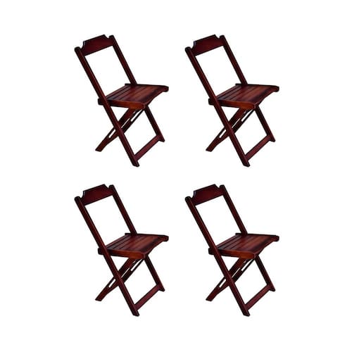 Kit 4 Cadeiras De Madeira Dobravel Imbuia é ideal para bares, restaurantes, estabelecimentos, áreas de lazer e tambem para sua casa. Feito em madeira maciça, tornando resistentes e duráveis. Seu design permite que seja encaixado em qualquer ambiente, trazendo um toque a mais para seu estabelecimento. Além de sua durabilidade, o que lhe trará conforto para servir seus clientes. Por ser dobrável torna-se mais fácil guardar, manusear e limpar o produto. Atenção: EVITE USAR PRODUTOS ABRASIVOS E QUíMICOS PARA LIMPEZA DO PRODUTO, aconselha-se o uso de pano umedecido para melhor conservação; mantenha o produto fora de chuva e sol constantes. CADEIRA Cor: Imbuia Modelo: Dobravel Dimensões: Altura 80 | Largura 45 | Profundidade 42