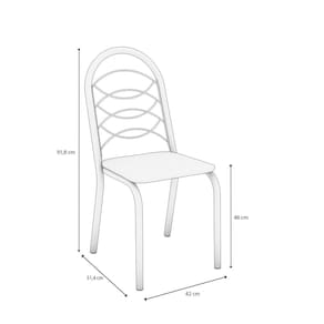 Robusta, prática e versátil em todos os momentos, aposte na Cadeira Holanda da Kappesberg e deixe seus momentos ainda mais completos. Produzida em estrutura metálica pintada com tinta epóxi na cor níquel, com o máximo de resistência, a cadeira conta com estrutura tubular redonda, além de um design prático para todos os momentos. Medindo 91,8cm de altura, sendo 46cm a altura do assento, 42cm de largura e 58cm de profundidade, ela suporta até 130kg, garantindo estabilidade e resistência. E para mais comodidade, o assento é estofado e recoberto em tecido bouclé cinza. Já o encosto, enclinado, conta com detalhes em aramado, que proporcionam um melhor acabamento e conforto durante as refeições. Renove seus momentos com a Cadeira Holanda da Kappesberg e os deixe ainda mais completos. Acabamento da Estrutura: Pintura Altura do assento até o chão: 46 cm Ambiente Principal: Sala de Jantar Complexidade da Montagem: Média: pode ser montado por mais de uma pessoa e/ou necessite de maior conhecimento para montagem Cor: Nickel/Bege Cor do Produto: Nickel/Bege Escala de Brilho: Fosco Estrutura do Assento: MDP Estrutura do Encosto: Metal Itens Inclusos: 4 Cadeiras, Manual de Montagem e ferragens Linha ou Coleção: CROME EPOXI Material Principal: Metal Necessita Montagem: Sim Origem do Produto: Nacional Peso: 15,7 kg Possui Rodízio: Não Recomendações de Uso, Manutenção e Limpeza: Limpeza diária somente com pano seco (flanela) ou pano branco e macio, pois o acúmulo de sujeira estimula o aparecimento de ferrugem. Evitar limpar com água, pois pode ocorrer o acúmulo de líquido em regiões especíicas da peça. Não utilizar produtos de limpeza que possuem cloro em sua formação. Encerar no mínimo uma vez por mês com cera automotiva. Em zona litorânea encerrar pelo menos 1 vez por semana. A maresia e a umidade são altamente prejudiciais ao revestimento. Não utilizar qualquer tipo abrasivo de limpeza. Não deixar as estruturas expostas ao ambiente externo como sacadas, patios...etc. Batidas na estrutura podem ocasionar riscos e desplacamento da camada de pintura. Revestimento do Encosto: Pintura Epoxi Sistema de Montagem: Parafuso Philips Tipo de Assento: Fixo Tipo de Encosto: Fixo
