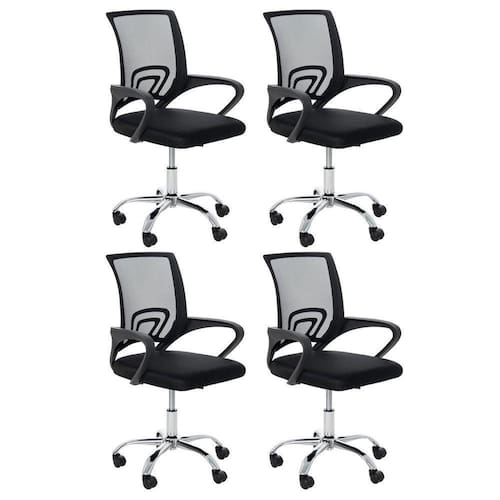 Kit 4 Cadeiras De Rodízios Tok Escritório Home Office Telinha Preto Kit 4 cadeiras de rodízios Tok escritório home office telinha Preto - Características Gerais do Produto: - Material: Tecido, polipropileno e metal - Altura do assento: 40-50 cm (min-max) - Largura do assento: 47 cm - Produto empilhável: Não - Comprimento do assento: 50 cm - Peso suportado: 130 kg - Limpeza e cuidados: Pano úmido sem aplicação de produtos químicos ou abrasivos - Necessita montagem: Sim Acompanha o produto: - 4 cadeiras de rodízios Tok escritório home office telinha Garantia: - 90 dias