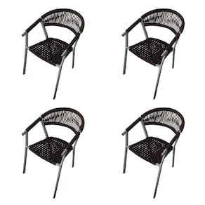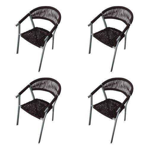 Kit 4 Cadeiras Decorativa Joana em Corda Náutica e Base em Alumínio Cinza /marrom