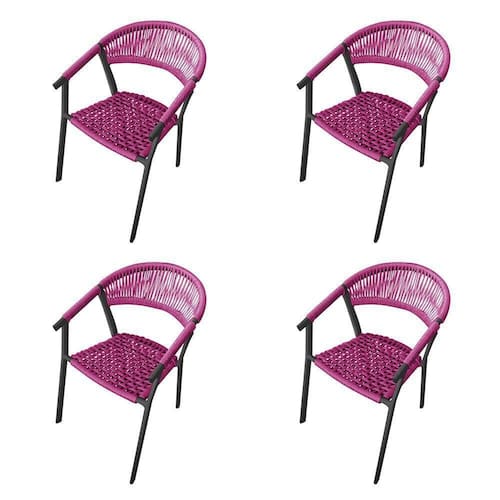 Kit 4 Cadeiras Decorativa Joana Em Corda Náutica E Base Em Alumínio Preta /rosa - Cor: Rosa