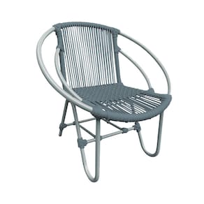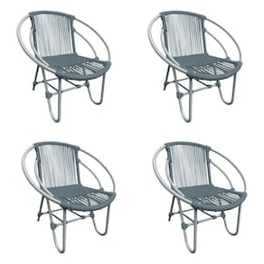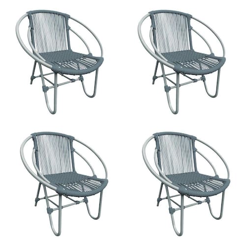 Kit 4 Cadeiras Decorativa Julia em Corda Náutica e Base em Alumínio Cinza/cinza