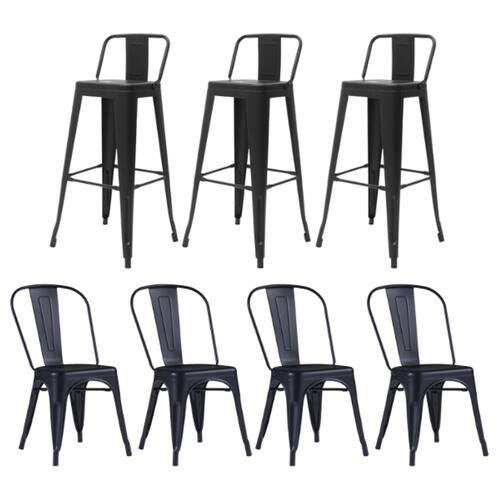 Este kit completo com 4 cadeiras e 3 banquetas Iron Tolix com encosto é a escolha perfeita para quem deseja trazer um visual industrial moderno aos ambientes. Fabricado em aço carbono com pintura eletrostática, o conjunto oferece resistência excepcional, durabilidade e um acabamento impecável que valoriza qualquer espaço. As cadeiras empilháveis são práticas e não necessitam montagem, facilitando o armazenamento e o uso diário. Com encosto anatômico que proporciona conforto, cada cadeira possui 44 cm de altura até o assento, 43 cm até o encosto, 36 cm de largura e 36 cm de profundidade. As banquetas, com 76 cm de altura até o assento e 97,5 cm até o encosto, complementam perfeitamente o conjunto e requerem apenas montagem simples. Ideais para cozinhas, áreas gourmet, bares e espaços comerciais, as peças são indicadas para áreas internas e externas secas. A estabilidade e funcionalidade deste kit Iron Tolix transformam qualquer ambiente em um espaço sofisticado e acolhedor. O produto acompanha garantia de 90 dias. As fotos são ilustrativas e podem apresentar variação de tonalidade.