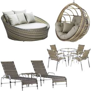 Kit 4 Cadeiras e Mesa, 2 Espreguiçadeiras, 1 Balanço Ninho e 1 Chaise em Alumínio Trama