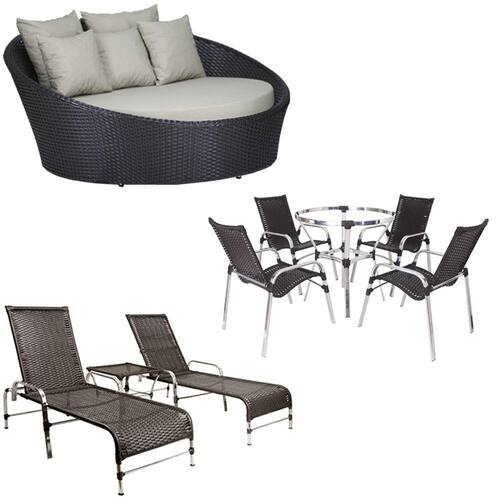 Kit 4 Cadeiras E Mesa 2 Espreguiçadeiras 1 Chaise Alumínio Trama