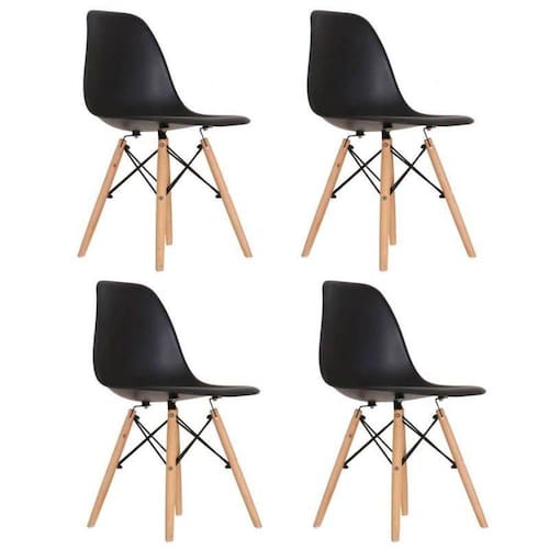 Kit 4 Cadeiras Eames Preta Ícone do design, a Cadeira Eames foi criada na década de 50 pelo casal de designers Ray e Charles Eames e se tornou um grande clássico, sendo coringa na decoração. Considerado um produto revolucionário da época, foi vencedor de um concurso no Museu de Arte Moderna de Nova Iorque. Também conhecida como Cadeira Eiffel devido a estrutura de aço de sua base, se tornou peça queridinha dos decoradores modernos. Sua concha ergonômica é produzida em PP Polipropileno e conta com qualidade única, tendo firmeza e conforto em seu encosto. Seus pés são feitos em madeira e aço com peças antiderrapantes, proporcionando segurança e resistência. Muito mais de um item funcional, a Cadeira Eames é uma peça de decoração moderna Cada Cadeira Eiffel irá em duas partes, porém não é necessária a contratação de um profissional. Limpeza e Manutenção: Utilizar pano macio levemente umedecido com água, seguido de pano seco. Não utilizar produtos químicos, abrasivos ou limpeza à vapor. Dimensões Aproximadas: Altura: 80 cm Largura: 46,5 cm Comprimento: 57,5 cm Peso do produto montado: 3,3 Kg Peso Máximo Suportado: 110 Kg
