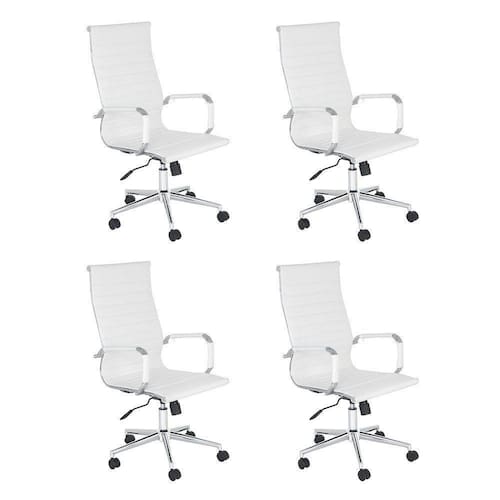 Kit 4 Cadeiras Escritório Esteirinha Diretor Home Office - Branco Kit 4 Cadeiras escritório Esteirinha Diretor Home office Branco - Características Gerais do Produto: - Material: Metal - Material do assento: PU sintético - Altura do encosto: 60 cm - Material dos pés: Metal - Altura do assento: 45-55 cm (min-max) - Largura do assento: 47 cm - Produto empilhável: Não - Comprimento do assento: 47 cm - Peso suportado: 130 kg - Limpeza e cuidados: Pano úmido sem aplicação de produtos químicos ou abrasivos - Necessita montagem: Sim Acompanha o produto: - 4 Cadeiras Esteirinha Garantia: - 90 dias