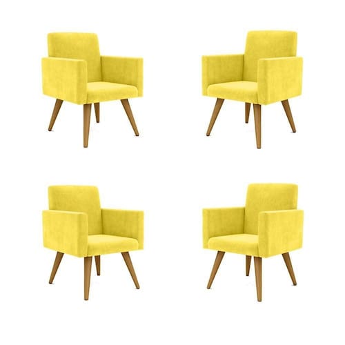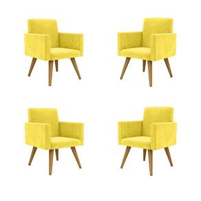 Kit 4 Cadeiras Escritório Poltrona Decorativa Cor:amarelo