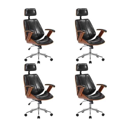 A cadeira Kopenhagen Presidente é toda revestida em couro ecológico e possui sua estrutura em madeira, o que a torna ótima por conta de seu design para salas de reuniões e presidência. Ela também possui o mecanismo relax, o que irá manter quem estiver sentado nela mais confortável, o que unido a seu encosto de cabeça é ainda mais confortável, além de ser possível ajustar a altura do assento! Altura do Conjunto: 124 cm Ambiente: null Ambiente Principal: Escritório Cor: Preto Informação Complementar: 4x Cadeira Escritório Presidente Giratória Kopenhagen com Apoia Cabeça Preto/Amadeirado Largura: 61 cm Altura: 124 cm Peso: 16,5 kg Profundidade: 63 cm Necessita Montagem: Sim