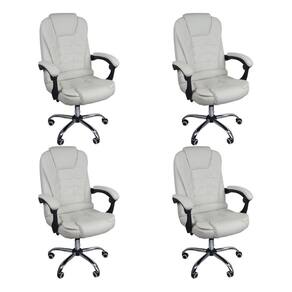 Kit 4 Cadeiras Escritório Presidente Reclinável Ergonômica - Branco