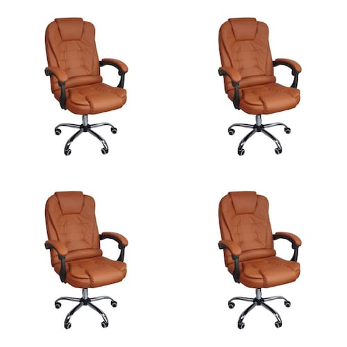 Kit 4 Cadeiras Escritório Presidente Reclinável Ergonômica - Marrom
