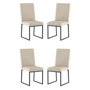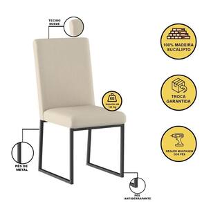 Kit 4 Cadeiras Estofadas Base De Ferro Preto Para Mesa Jantar Bege