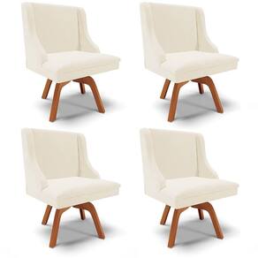 Kit 4 Cadeiras Estofadas Base Giratória de Madeira Lia Veludo Bege - Ibiza