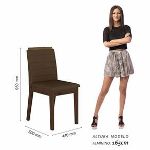 Detalhes Técnicos das Cadeiras: -Acabamento da Cadeira: Assento e Encosto Tapeçados -Almofada do Assento: Fixa -Cadeira Estofada: Sim -Peso Suportado da Cadeira: 90KG -Facilidade da Montagem: Média -Tonalidade da estrutura da Cadeira: Imbuia -Tonalidade do Tecido: Suede Marrom - Assento: D16 -Encosto: D14 -Tipo de Pintura: UV Texturizada -Material da Estrutura: MDF 25mm e 18mm -Medida da Cadeira: 95CM x 44CM x 50CM