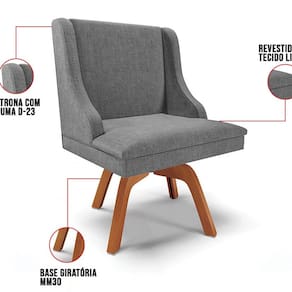 Elegância e sofisticação? Temos por aqui! Conheça o Kit 4 Cadeiras Estofadas Giratória para Sala de Jantar Lia Linho Grafite, da Ibiza!