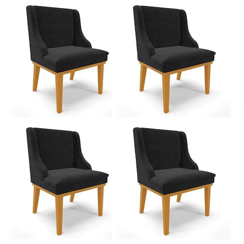 Tão importante quanto a mesa, as cadeiras são essenciais para compor um ambiente harmônico e funcional, então conheça o Kit 4 Cadeiras Estofadas para Sala de Jantar Base Fixa de Madeira Castanho Lia Suede Preto, que a Ibiza desenvolveu para você!