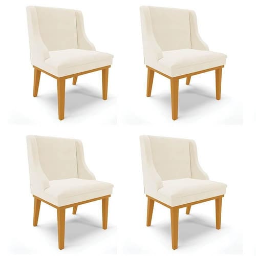 Unindo conforto, praticidade e design elegante, a Ibiza desenvolveu o Kit 4 Cadeiras Estofadas para Sala de Jantar Base Fixa de Madeira Castanho Lia Veludo Bege vem conferir!