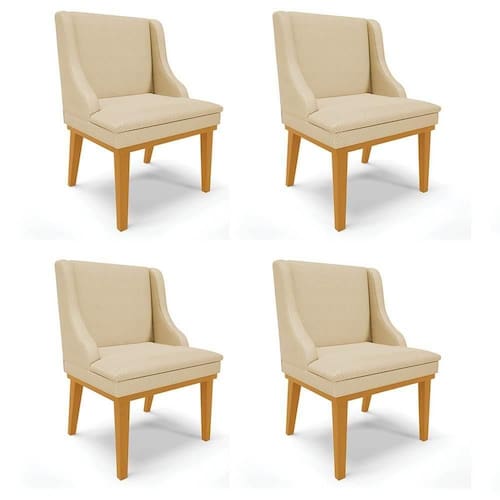 Unindo conforto, praticidade e design elegante, a Ibiza desenvolveu o Kit 4 Cadeiras Estofadas para Sala de Jantar Base Fixa de Madeira Castanho Lia Veludo Off White vem conferir!