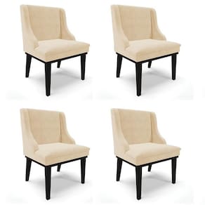 Pensando em renovar os móveis de casa? Vem conhecer o Kit 4 Cadeiras Estofadas para Sala de Jantar Base Fixa de Madeira Preto Lia Suede Bege, da Ibiza!
