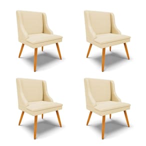 Para quem não abre mão de conforto, versatilidade e qualidade, precisa conhecer o Kit 4 Cadeiras Estofadas para Sala de Jantar Pés Palito Lia Veludo Off White Luxo, da Ibiza! Confira os detalhes abaixo!